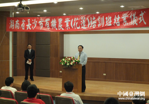 國臺辦投訴協調局副局長張世宏、湖南省政府秘書長戴道晉、湖南省臺辦主任馮波、長沙市委常委文樹勛、臺灣萬事達國際集團董事局主席李玉文等出席了長沙市有機農業培訓交流班結業儀式。(中國臺灣網湖南省臺辦通訊員 康衡)