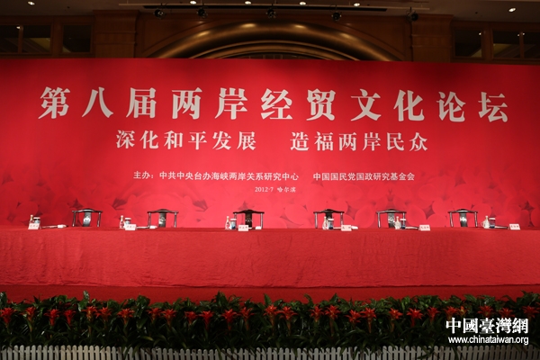 第八屆兩岸經貿文化論壇由中共中央臺灣工作辦公室海峽兩岸關系研究中心與中國國民黨國政研究基金會共同主辦。與會人士圍繞“深化和平發展、造福兩岸民眾”這一主題,就和平發展回顧與前瞻、深化經貿合作、擴大文教交流等三項議題進行研討。(中國臺灣網記者 陳佳慧)