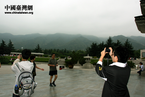 13日早晨,12名臺灣在校大學生和6名來自北京的大學生志愿者乘車來到西安市臨潼區驪山之北,秦始皇帝陵的所在。微微細雨中,驪山秀美的景色讓人為之精神一震,聽說群山之中有一座埋藏著未曾開挖的秦始皇陵墓,同學們紛紛舉起相機拍照留念。