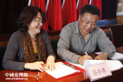 在16上午的座談會上,五家渠農六師101團1連與3連分別與臺灣鄉鎮里長交流團代表簽署了一份兩地友好合作意向書。意向書旨在促進兩地深入交流互訪與深入合作,得到了兩地同胞的大力支持。