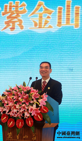 世界銀行前副行長、北京大學(xué)教授林毅夫在海峽兩岸企業(yè)家紫金山峰會作主題演講。(中國臺灣網(wǎng) 王偉攝影)