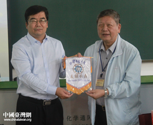 西安八十五中學接受臺灣省教育會贈送的旗子。(中國臺灣網 孟雅詩 攝)