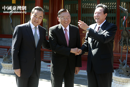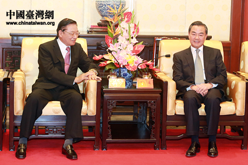 9月28日中午,中共中央臺辦、國務院臺辦主任王毅會見了臺灣;鶗岸麻L江丙坤。(中國臺灣網 陳佳慧 攝)