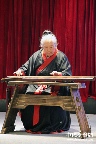 海峽兩岸傳統(tǒng)文化藝術雅集5日下午在北京前門的臺灣會館舉行。中國琴會副會長、秘書長楊青獻藝。(中國臺灣網(wǎng) 楊麗 攝)