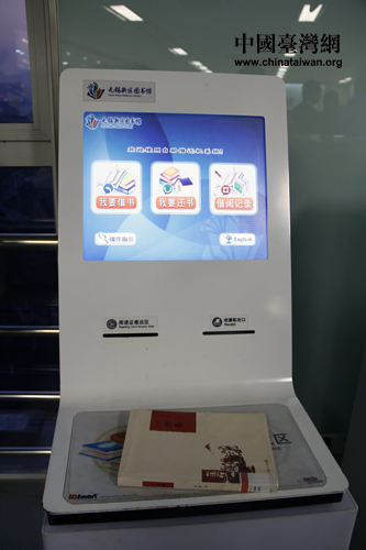 自助借還書機。讀者可將多本書籍一起放置在掃描機上,短時間內完成借還書手續(xù)。(中國臺灣網 馬迪 攝)