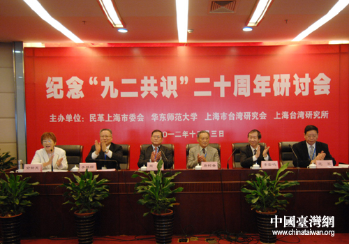 中國臺灣網12月3日上海消息 今天上午,由民革上海市委、上海臺灣研究所、上海市臺灣研究會、華東師范大學交流與區(qū)域發(fā)展研究所聯(lián)合舉辦的紀念“九二共識”二十周年研討會在上海民主黨派大廈舉行。海協(xié)會原常務副會長唐樹備、上海市臺辦副主任李雷鳴、華東師范大學副校長范軍、中國國民黨大陸事務委員會主任高輝,以及臺灣前海基會副董事長兼秘書長邱進益等出席了會議。