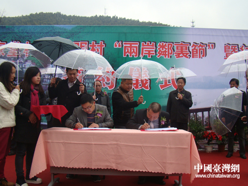 兩村村長簽訂兩村締結友好村協(xié)議。(圖片來源:湖州市臺辦)