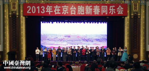 臺盟中央、全國臺聯今(25)日在京共同舉辦2013年在京臺胞新春同樂會。在京定居的臺胞代表、在京投資經商的臺灣企業界人士、在京求學的臺灣學生與首都各界300余人歡聚一堂,共敘親情、友情,喜迎新春佳節。(中國臺灣網 王怡然 攝)