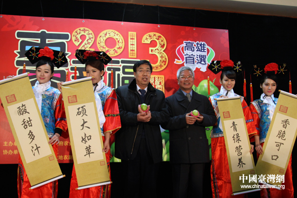 高雄農業局局長蔡復進(右三)30日率隊進京推銷高雄蜜棗(中國臺灣網 李徽 攝)