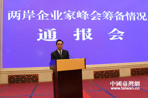 4月25日下午,兩岸企業家峰會籌備情況通報會在江蘇省南京市舉行。(中國臺灣網 馬迪 攝)