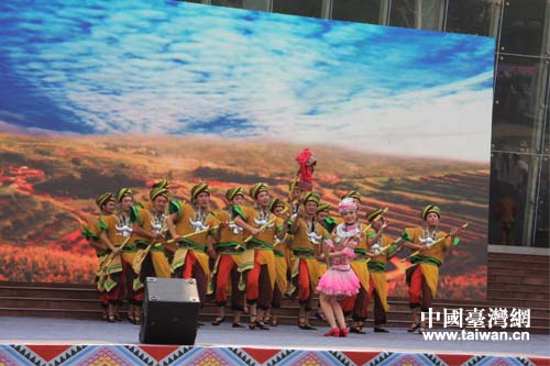 中國臺灣網8月18日恩施消息 18日上午,“再約女兒會——鄂臺少數民族手牽手”活動開幕式在恩施州民族廣場舉行。為了對遠道而來的臺灣少數民族同胞表示熱烈歡迎,恩施土家族展示了具有民族特色的歌舞,臺灣少數民族參訪團也表演了原住民族鄒族文化創作的樂舞。