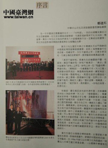 臺灣著名畫家黃永川書畫作品集,已由團結出版社出版。全國政協常委、民革中央副主席、中華中山文化交流協會副會長兼秘書長鄭建邦為畫集作序(中國臺灣網 董憲超 攝)