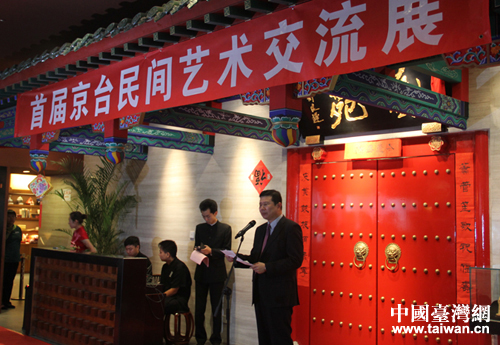 首屆京臺(tái)民間藝術(shù)交流展于2013年9月26日隆重開幕,北京市臺(tái)辦、北京市臺(tái)聯(lián)、中華青年企業(yè)家協(xié)會(huì)、北京大碗茶文化發(fā)展有限公司、北京老舍茶館有限公司的領(lǐng)導(dǎo)和嘉賓出席剪彩儀式。(中國(guó)臺(tái)灣網(wǎng) 楊永青 攝)