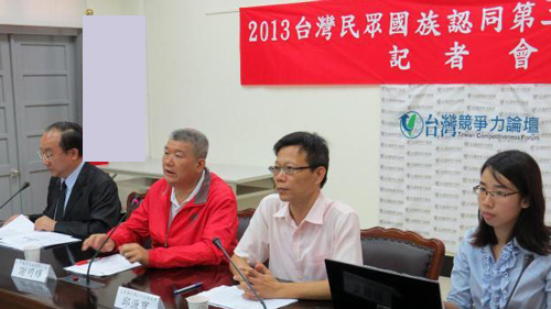 臺灣競爭力論壇理事長、臺灣大學政治系副教授彭錦鵬、論壇執行長謝明輝、艾普羅民調公司副總邱源寶、專案經理賴韻文上午在“立法院”請愿接待室召開記者會,公布第三季國族認同調查結果。