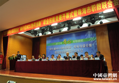 中國臺灣網12月16日珠海消息 日前,首屆粵臺高職院!皢纹瑱CMCU協同創新”職業技能競賽在珠海城市職業學院成功舉辦。中國工程院院士劉人懷,省教育廳處長王魏鋒,市人大常委會副主任鄧群芳,臺灣修平科技大學校長鐘瑞國,市職業技術學院黨委書記黨益群、院長劉華強,市臺灣事務局局長莫錦華,市臺商投資企業協會常務副會長許振旺等領導出席開幕式。