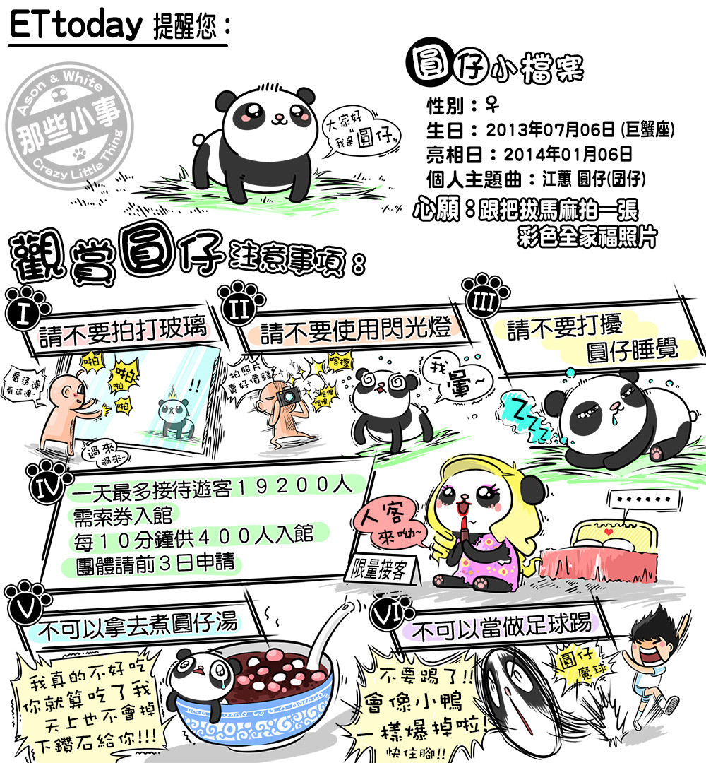 特制版的參觀圓仔注意事項漫畫,希望藉由活潑的方式提醒大家愛護圓仔。(臺媒圖)