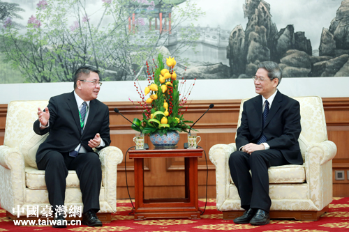 1月10日, 中共中央臺辦、國務(wù)院臺辦主任張志軍在北京會見了東莞臺商子弟學(xué)校葉宏燈董事長率領(lǐng)的畢業(yè)班學(xué)生“北京文化之旅”參訪團(tuán)一行。(中國臺灣網(wǎng) 于斯文 攝)