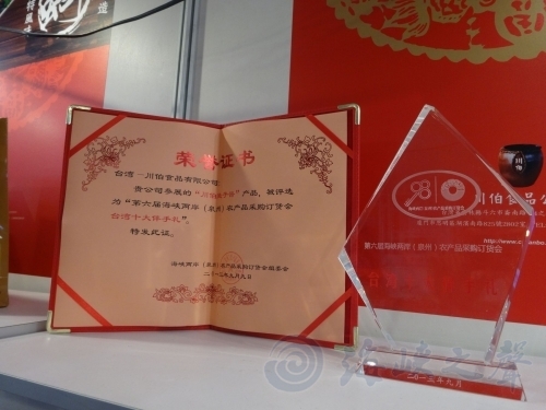 臺灣川伯本名劉新川,參加多屆海交會了,沒有一屆落下。川伯專做中國最美味的古早味“蔭豆豉”,他的“川伯萌豆豉”早已名揚海峽兩岸。川伯祖籍山東萊陽,父親是大陸人,母親是臺灣人。“正像我的父母一樣,現在大陸的新娘可以嫁到臺灣,臺灣新娘也可以嫁到大陸,兩岸早就是一家。”多年來往于兩岸,川伯深深體會到“兩岸一家親”,自己也像福州這邊的老顧客朋友們一樣,每年都期待再度的重逢,期待那一份朋友的情誼和兄弟般的親情互動。