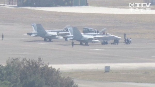 【環球軍事報道】兩架美國F-18戰斗機昨天下午因故障迫降臺南機場。臺軍方表示,這是基于人道立場和依照國際慣例,協助美國軍機降落,排除故障。