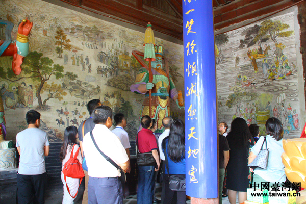 8月18日,“第14屆遼寧臺灣周”在錦州市拉開帷幕。圖為參會臺灣嘉賓參訪錦州義縣奉國寺壁畫。(中國臺灣網 王怡然 攝)