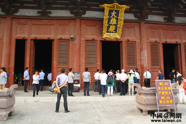 8月18日,“第14屆遼寧臺灣周”在錦州市拉開帷幕。圖為參會臺灣嘉賓參訪錦州義縣奉國寺大雄殿。(中國臺灣網 王怡然 攝)