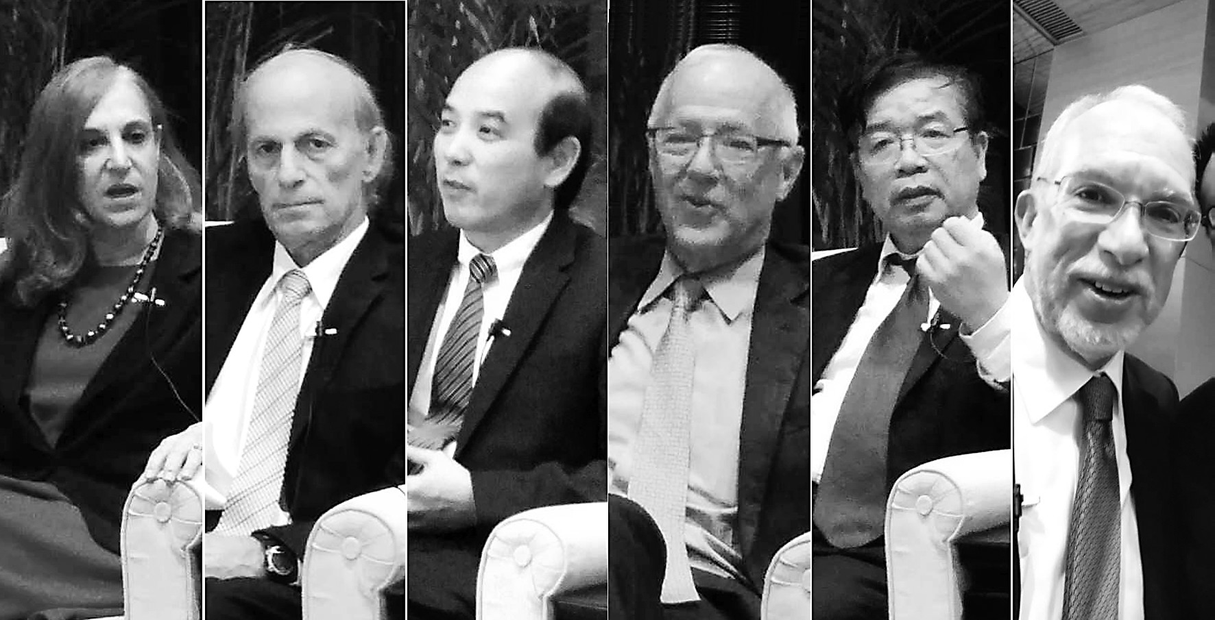 自左至右:美國國際戰(zhàn)略研究中心高級(jí)顧問葛來儀、布魯金斯學(xué)會(huì)高級(jí) 研究員杰弗里·貝德、中國現(xiàn)代國際關(guān)系研究院副院長(zhǎng)袁鵬、美中關(guān)系全國 委員會(huì)會(huì)長(zhǎng)斯蒂芬·歐倫斯、上海社會(huì)科學(xué)院副院長(zhǎng)黃仁偉、布魯金斯學(xué)會(huì) 高級(jí)研究員埃文斯·李維亞。