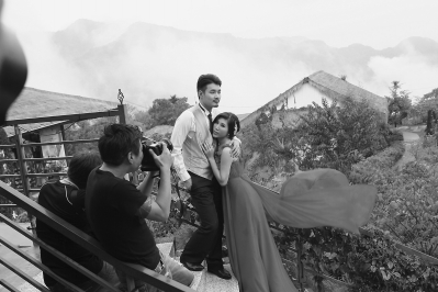 廖嘉今:每個人心中的美都有不一樣的內涵。因此,我們給年輕新人提供的婚拍選擇很多樣,有拍古跡的,有拍山景、海景的,還有拍古街的、夜景的。風格呢,古典的、現代的、浪漫的,各取所需。如今許多新人追求個性化,玩轉私人訂制更是他們的優先選擇。這種私人訂制,不僅可以選風格、選地點,還可以選攝影師、造型師。