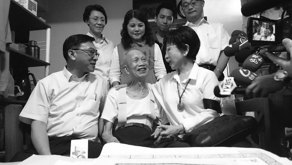 6月11日,國民黨主席洪秀柱到高雄探視受辱的老榮民周富文。