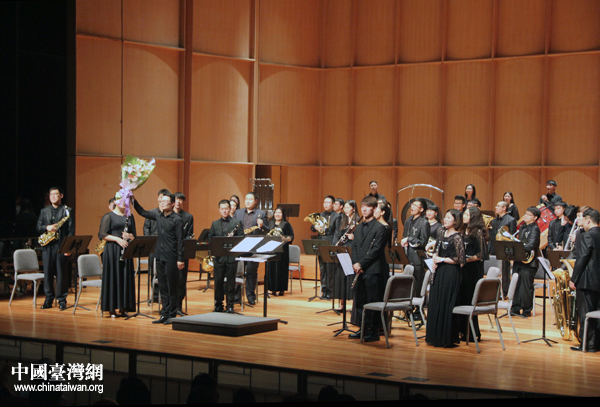 首都師范大學管樂團向臺北觀眾致意。(中國臺灣網 王思羽 攝)