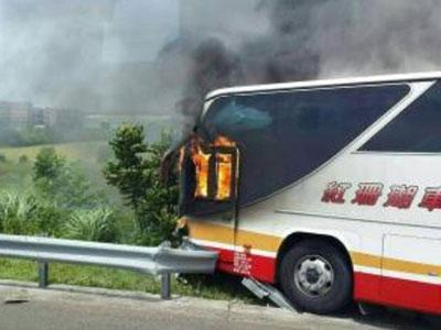 今天中午12時(shí)57分,臺灣桃園機(jī)場聯(lián)絡(luò)道發(fā)生自撞車禍,當(dāng)?shù)鼐藛T接獲通報(bào),一輛游覽車因不明原因撞上護(hù)欄,整輛車隨即起火燃燒。中午13時(shí)21分火勢撲滅,車上26人罹難。失火游覽車屬玫瑰石通運(yùn)有限公司,出廠時(shí)間為2010年5月,車齡僅6年,但曾有5次違規(guī)紀(jì)錄。