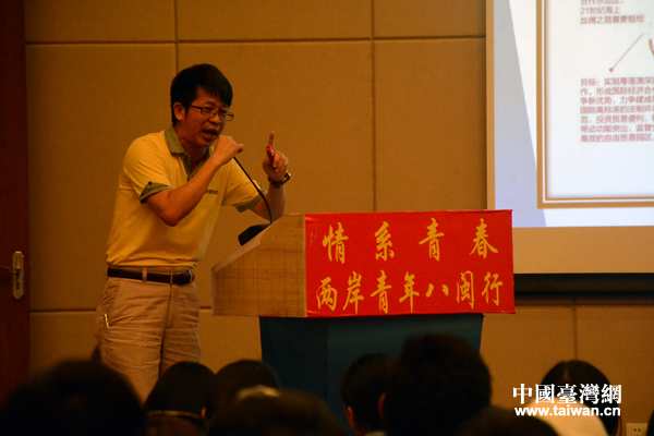 來臺(tái)灣的導(dǎo)師劉漢良向兩岸青年詳解扶持政策及創(chuàng)業(yè)知識(shí)。(中國(guó)臺(tái)灣網(wǎng) 吳怡 攝)