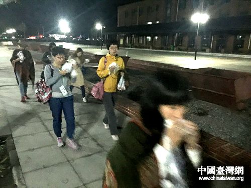 女記者們顧不上淑女形象,邊走邊吃起來。在頭天夜里記者們去拍茶卡星空時,有人夜里2點在微信群里發信息“餓了,誰有方便面!”記者們是真餓了。(中國臺灣網 蕪同 攝)