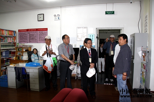 臺灣客人參觀社區(qū)圖書室。(北京黃埔軍校同學(xué)會宣傳處 張建軍 攝)