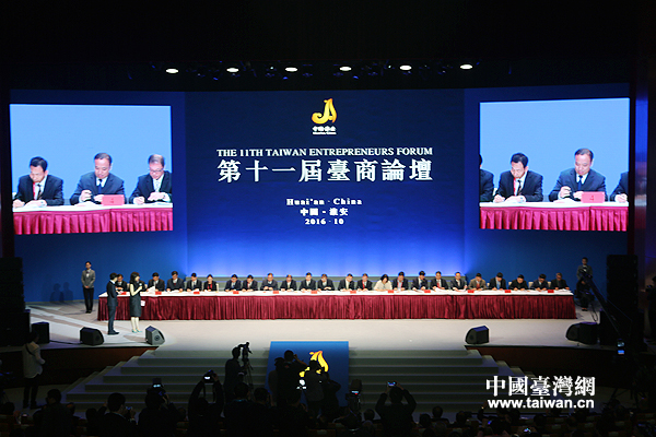 第十一屆臺商論壇舉行現(xiàn)場簽約儀式。(中國臺灣網(wǎng) 王思羽 攝)