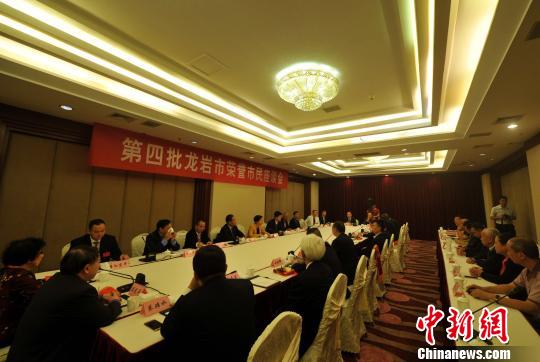 在8日上午舉行的第七屆海峽兩岸機械產業博覽會暨第九屆中國龍巖投資項目洽談會開幕式上,福建省龍巖市舉行第四批榮譽市民授榮儀式,香港龍巖同鄉會理事長陳伯安、福建愛得瓦照明電氣有限公司董事長俞志龍、漳平市國聯玩具禮品有限公司董事長李俊揚等34位人士被授予新一批龍巖市榮譽市民稱號。值得關注的是,福建中天農業科技發展有限公司董事長胡鈺郎、福建漳平臺品茶葉有限公司董事長謝東慶、福隆電子(龍巖)有限公司總經理歐慶川等3位臺商榜上有名。