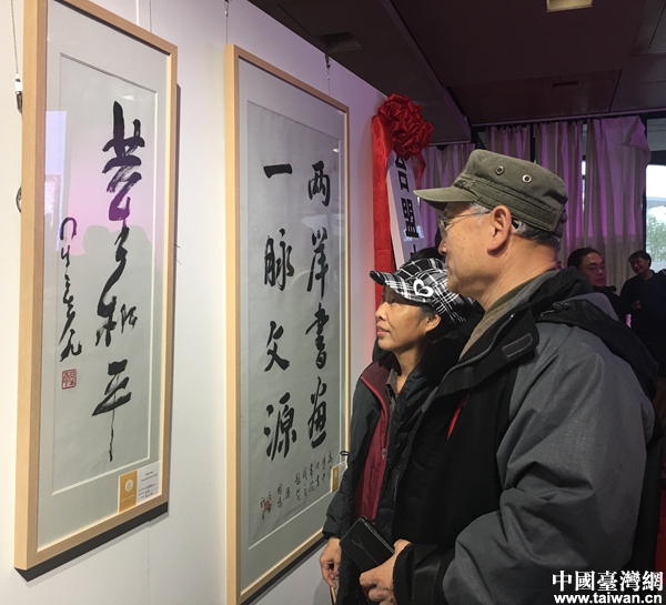 嘉賓欣賞星云大師書法作品《共享和平》。(中國臺灣網 齊昕 攝)