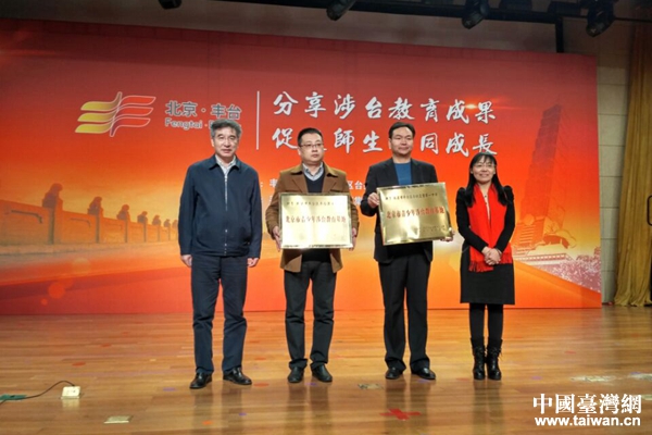 2016年,東鐵營(yíng)一中、豐臺(tái)五小被授予市級(jí)涉臺(tái)基地校,北京市第十中學(xué)等三所學(xué)校被授予區(qū)級(jí)涉臺(tái)教育基地稱號(hào),在今天的總結(jié)會(huì)上,馬振生、周新春等為這幾所學(xué)校授牌。