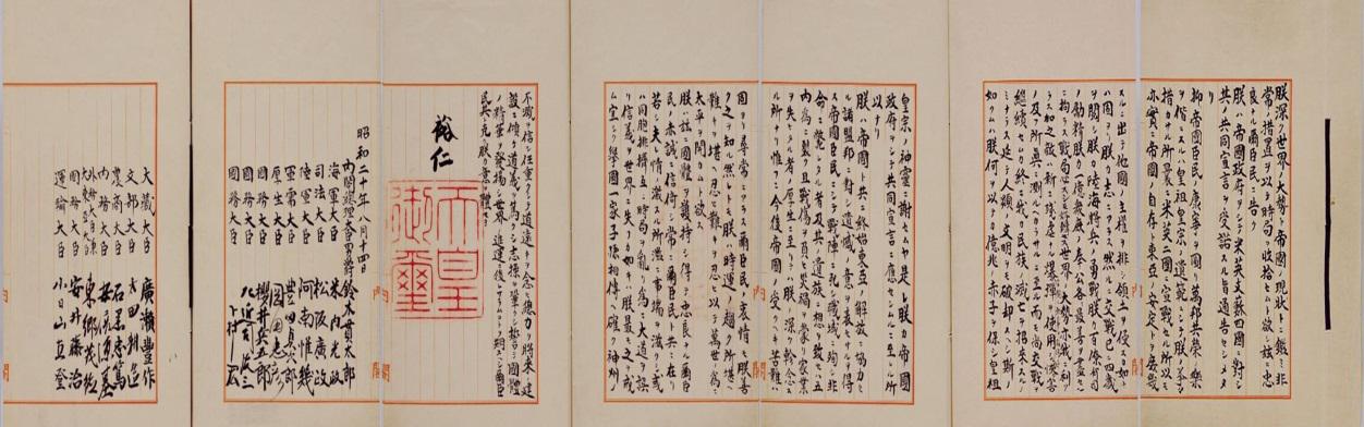 1945年8月15日中午,“社團法人臺灣放送協會”所轄臺北、臺中、臺南、嘉義、花蓮放送局(按,廣播局)與“日本放送協會(NHK)”同步廣播日本昭和天皇裕仁于8月14日錄制的廣播講話《終戰詔書》(圖一),宣布日本接受《波茨坦宣言》、無條件投降。