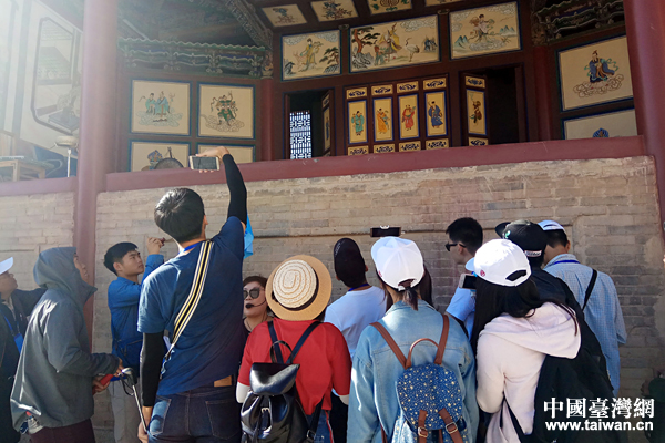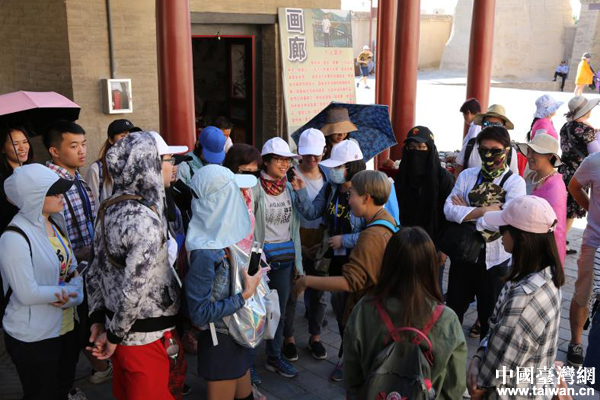 兩岸青年聽(tīng)導(dǎo)游講述嘉峪關(guān)城樓的歷史故事。(中國(guó)臺(tái)灣網(wǎng) 張亞靜 攝)