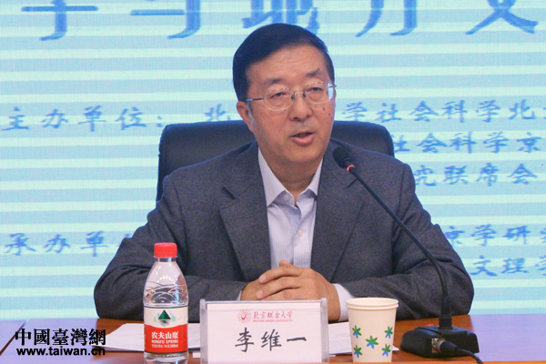 北京聯(lián)合大學臺灣研究院院長李維一主持研討會開幕式。(中國臺灣網(wǎng) 張潔 攝)