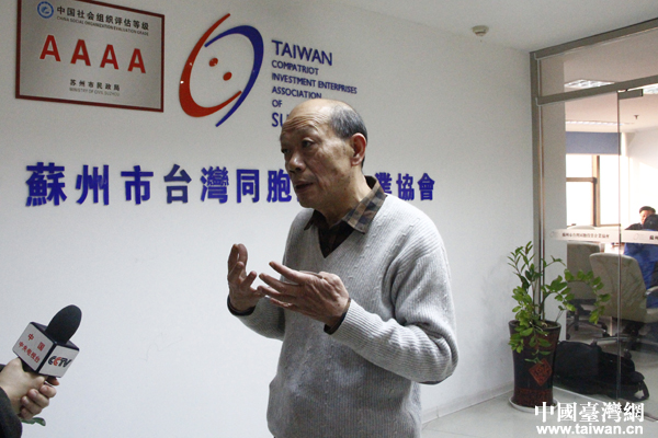 蘇州市臺商法律顧問團團長朱偉接受記者采訪。(中國臺灣網 王怡然 攝)