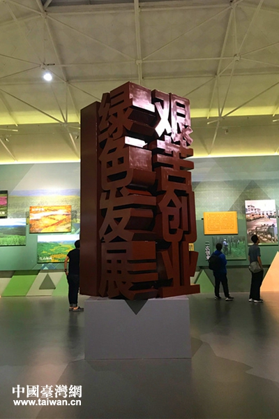 “牢記使命 艱苦創(chuàng)業(yè) 綠色發(fā)展”展覽館內(nèi)展示的賽罕壩精神標(biāo)語(yǔ)。(中國(guó)臺(tái)灣網(wǎng) 趙苗青 攝)