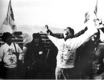 1988年1月20日,由臺灣“外省人返鄉探親促進會”組織的首個“臺灣返鄉探親團”登上了長城。 新華社發
