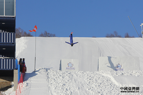 云頂滑雪學校學生正在進行空中技巧訓練。(中國臺灣網 賈若瀾 攝)