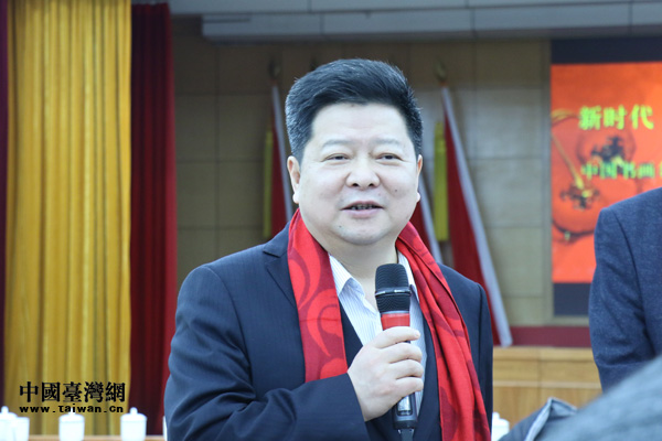 中國美術家協會會員、中國林業文聯美術家協會主席、中央社會主義學院教授、中國花鳥畫研修院院長徐湛致辭。(中國臺灣網 郭曉康 攝)