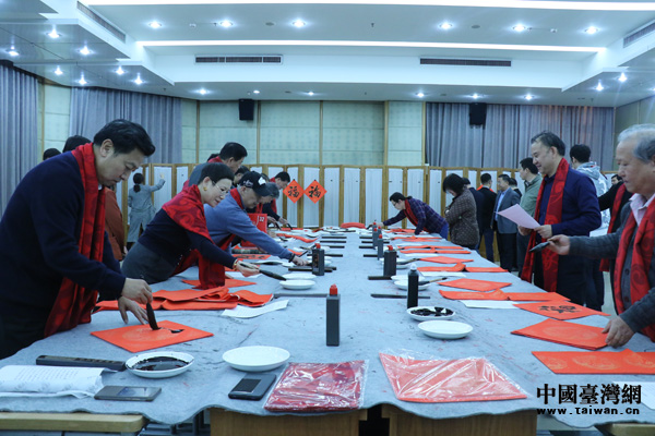 中國臺灣網2月1日北京訊 (記者 郭曉康)“新時代,新氣象,寫春聯,送萬!。2月1日下午,中國書畫名家走進中央臺辦迎春聯誼活動在中央臺辦機關大樓隆重舉行。