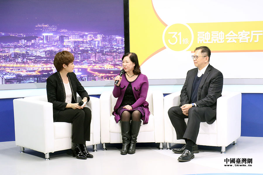 北京市臺商協會會長章啟正與江蘇龍燈化學有限公司副總經理郭怡秀講述了在大陸追夢、圓夢的故事。(中國臺灣網 尹賽楠 攝)