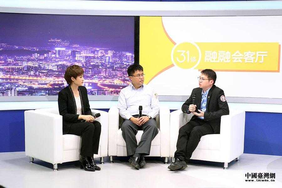 北京首鋼基金創業公社港澳臺總經理鄭博宇與中國人民大學中法學院經濟學系主任林承鐸講述了在大陸追夢、圓夢的故事。(中國臺灣網 尹賽楠 攝)
