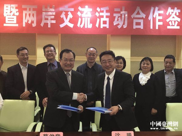 北京市涉臺法律事務研究會、臺灣海巡警察消防領導人總會簽署《交流合作備忘錄》。(央視網 張倩 攝)
