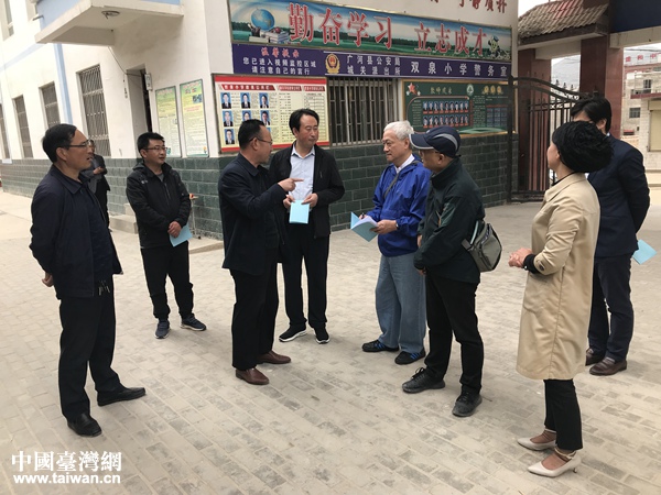 中國臺灣網5月17日訊 5月15日,臺灣知名企業臺塑集團黃家祺先生、長庚大學校長包家駒先生一行來到甘肅省臨夏州廣河縣,對2004年以來集團捐助修建的17所“明德小學”進行考察,實地走訪了6所學校并與縣教育局商討了下一步捐贈修繕規劃。中央臺辦掛職干部、常委副縣長李楊同志陪同調研。